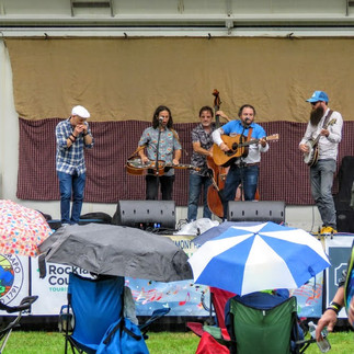“The rain is a mixed blessing, much needed but not today!” commented a patron at our 12th Annual Highlands Bluegrass Festival, as she took cover on the veranda of the Harmony Hall-Jacob Sloat House. Still, the on and off showers didn’t prevent 300+ ardent bluegrass fans from coming out to enjoy another year of fantastic music. Festival goers came prepared with rain garb, beach umbrellas, and pop-up tents. Under one tent, a jovial group huddled around low feasting tables culminating in a birthday celebration. Others danced joyously in the warm September showers. Alicia Speno from West Nyack was thrilled to have her two and four-year-old children intently engaged at the free kid’s craft tent provided by Flowers by Nan.